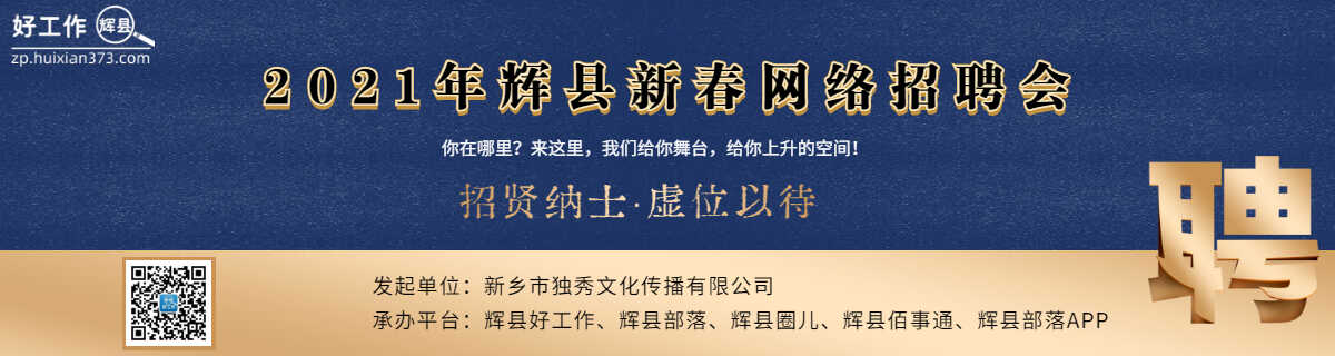 为进一步促进辉县人创业就业工作,切实解决就业难的问题,搭建企业单位与广大求职者的对接沟通平台,加快乡村振兴步伐,辉县好工作平台特举办“2021年辉县春季网络招聘会”。